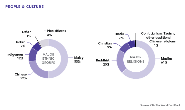 Malaysia is an ethnically and religiously diverse country split between mainland and maritime Southeast Asia. It is a major producer of the world’s palm oil (pictured above, right), an ingredient in many products we consume every day.