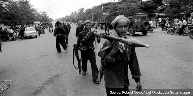 Figure 2: Khmer Rouge soldiers march into Phnom Penh, 1975.